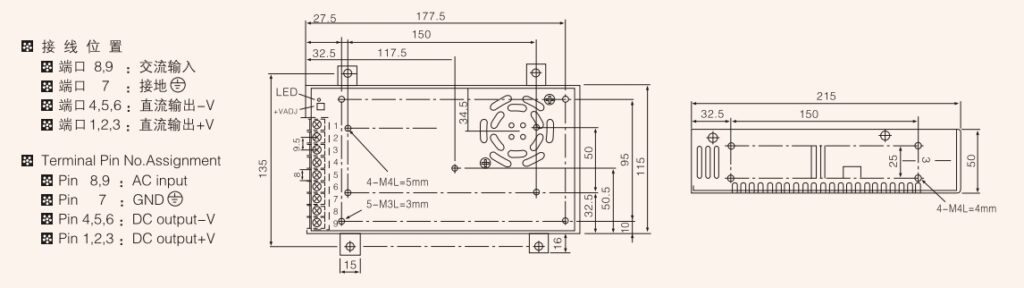 The LRS-450W series adopt an outward FAN cooling dissipation design. This design greatly improves the stability of the product.