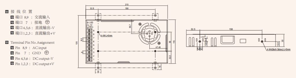 Adopting the input of 115VAC or 230VAC(selectable by switch), the entire series provides an output voltage line of 12V, 15V, 24V, 36V, and 48V.